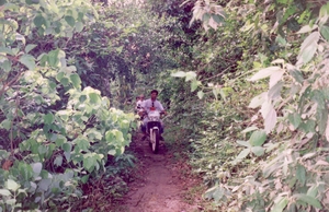 From Ban Sapan I drove to Ko-Samui, a famous Island in the gulf of Thailand, where I stayed also about 3 weeks. Beach fire, guitars, barbecue, and small bungalow directly on the beach, boot-trips in the marine-park and to Ko-Phangan famous for the full moon party's. A lot of backpack-tourists, waterfalls in the dschungle and a lot more. At Ko-Samui I made a lot of tours by feed in the dschungle and when I was bored of beach and to do nothing I was on the way to Had Yai and to Malaysia down the road No.4.