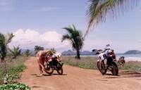 Here on the Beach-road at Ban-Sapan on the way to the Big Buddha in the mountains in front. On a beach like this I could not resist and drove along the water. That's real fun. But, sometimes also a little bit tricky. On the right photo you see what I mean.