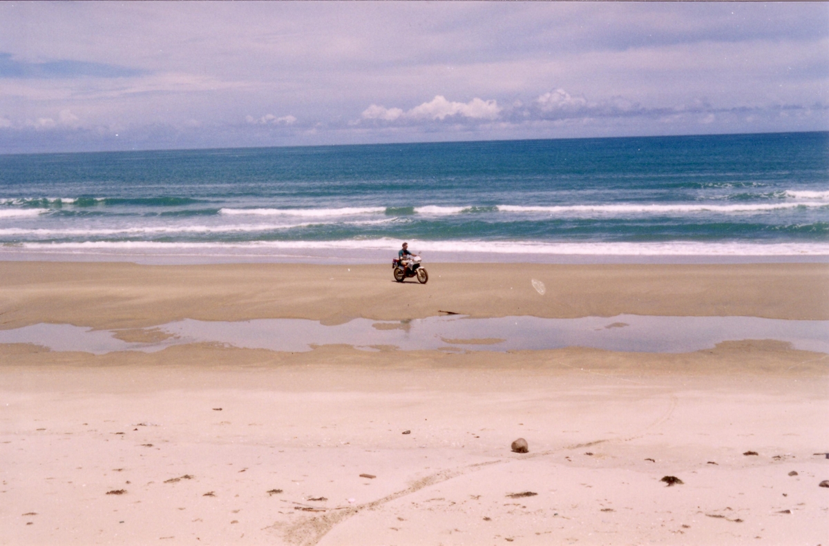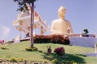From Chiang-Mai I drove to Mae-Hong-Song and back and over Pitsanalok, Uhtai Thani, Lop Buri to Bangkok and from there over Hua Hin to Ban-Sapan a small village near Chumphon. I read in the Bangkok-Post that in Ban-Sapan is one of the longest beaches in Thailand, so I liked to take a look at this and it was really amassing. A small fisher-village with a few bungalow resorts on one side the beach and the other side the mountain, the border to Burma. A big Buddha on a mountain, gold-fields, caves and a really pretty large beach without any tourists.