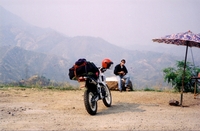 There looked at me and standing motionless but this made me even more scared. I had absolutely no idea where I was but the only thing what I wanted from now on was not going up anymore. Going back was also not possible because the last village with people was too far away to make it with the gas what was left in the tank. So I drove ahead trying to go down. On a crossroads a while later and I got already worry about the gas, stand again so a strange gay but this time I didn't see the gun. And I stopped to ask him for a village with gasoline. He looked at me like I was crazy but told me that a few kilometers more up the hill I will find what I looking for. Actually I didn't trust he but I had no choice also, but he told the true and I found the village and got gasoline ( 1:25 tow-tact gas but who cares in this situation).