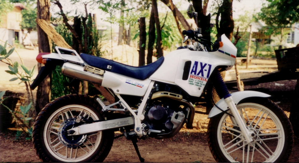 The village was about 90km east of Udon Thani where I bought the motorbike. The first trouble I had was to register the bike to get a number-plate. At the end it was not possible to get one, so I decided to drive without and I had no trouble at all about this. Amazing Thailand. The bike was a Honda AX-1 cc250 and this bike run and run and run. It was not too big for off-road, even with the baggage and for the tour the best choice and I had not one brake down at all.