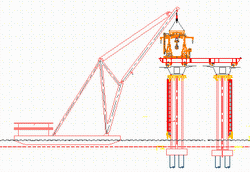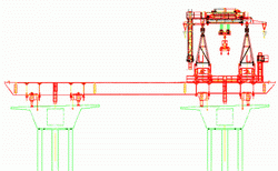 With two main winches ( capacity 138 tons each) the launcher is able to lift two segments at the same time into place, where high-strength epoxy is spread on both matching faces and with temporary ‘high-tensile-bars’ stressed to the ‘pier-segment or last erected pair of segments’.